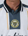 Featuring a vintage-inspired polo collar, this jersey stands out with a custom-embroidered team crest, showcasing the iconic Copacabana boardwalk design. The rich green and gold colorway pays homage to Brazil’s national pride, delivering bold style with deep cultural meaning.